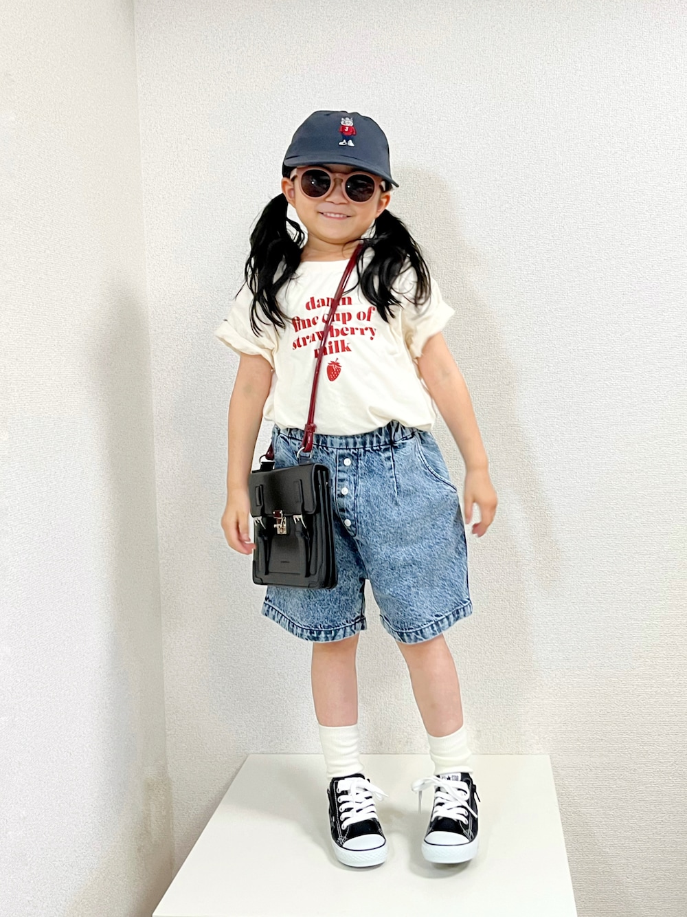 お目にとめて頂き有難うございます️♡ いつも♡、お気に入り、フォルダinしてくださる皆さま、本当にありがとうございます︎⭐︎コメント、フォローもとっても嬉しいです❁ #ハーフパンツ デニムハーフパンツで キレイめカジュアルコーデ🖤❤️💙 tops.. @lyceemine オリジナルプリントTシャツ 可愛いお値段かわいいデザインがお気に入りのTシャツ🍓 ◡̈ ♡ ♥ bottom.. @lowrysfarmkids CONEデニムショートパンツ ワンサイズUPでハーフパンツに✧ ワンサイズUPしたのに ウエストは何だかちょうど良く なってきました、、、‼︎ 𐤔 𐤔 はじめましてのjdbaceさん🐺❤️ CAPの形❣️とーってもキレイです✨ カラーは娘が選びました💙 🐺さんが赤いお洋服着てるのが可愛かった そうですʬʬʬ 🧢&👜でちょっぴりキレイめカジュアルコーデを目指してみました♡ ⭐︎ 16.9kg 106.8cm (4/12測定) いつも皆様の気持ちのこもった素敵な📂ありがとうございます( ; ; )どの📁もとっても素敵で、楽しみに見させて頂いています!!❤️感謝の気持ちでいっぱいです❣️ コーデ詳細はigへ⇰ ⇰ ⇰ ⭐︎********⭐︎********⭐︎*******⭐︎****** instagram▷asairo.wear ⭐︎********⭐︎********⭐︎*******⭐︎ ******