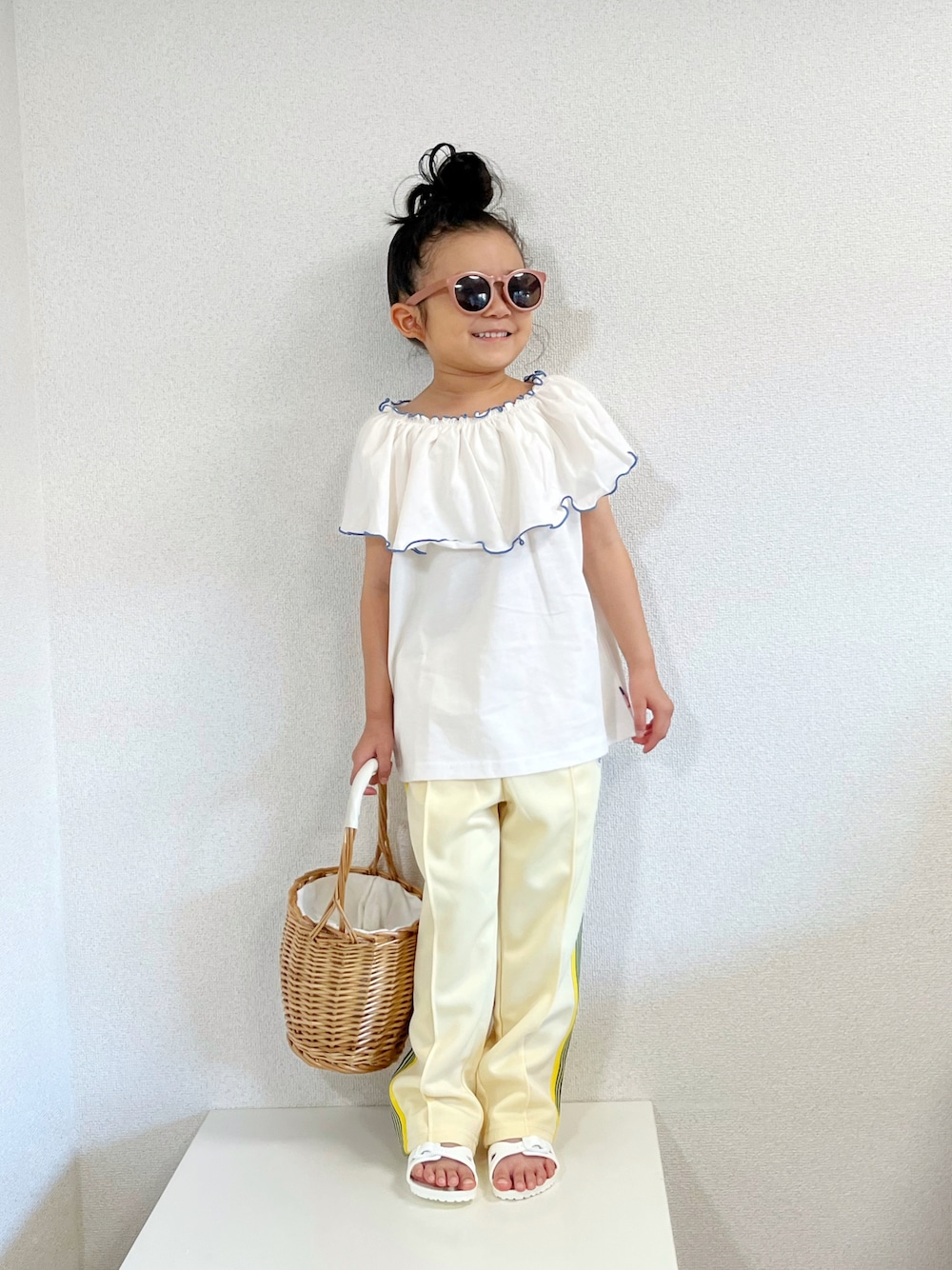 お目にとめて頂き有難うございます️♡ いつも♡、お気に入り、フォルダinしてくださる皆さま、本当にありがとうございます︎⭐︎コメント、フォローもとっても嬉しいです❁ #淡色コーデ #シンプルコーデ 娘のお気に入り服🌼でシンプルコーデ♡ tops.. @ciaopanictypy USAコットン2WAYフリル ビッグカラーノースリーブ メローデザインとフリルカラーが とっても可愛い𓍯✨ bottom.. @ciaopanictypy ラインジャージトラックパンツ 可愛いカラーがお気に入り💛 目立ちすぎないイエローなので きれいめトップスにも合わせられました♡ topsはお店で試着してパパに買ってもらった娘お気に入りのお洋服🤍 お店でとっても嬉しそうにこれにする〜って言ってフリフリ踊ってましたww ⭐︎ 17.8kg 108.5cm (6/30測定) いつも皆様の気持ちのこもった素敵な📂ありがとうございます( ; ; )どの📁もとっても素敵で、楽しみに見させて頂いています!!❤️感謝の気持ちでいっぱいです❣️ コーデ詳細はigへ⇰ ⇰ ⇰ ⭐︎********⭐︎********⭐︎*******⭐︎****** instagram▷asairo.wear ⭐︎********⭐︎********⭐︎*******⭐︎ ******