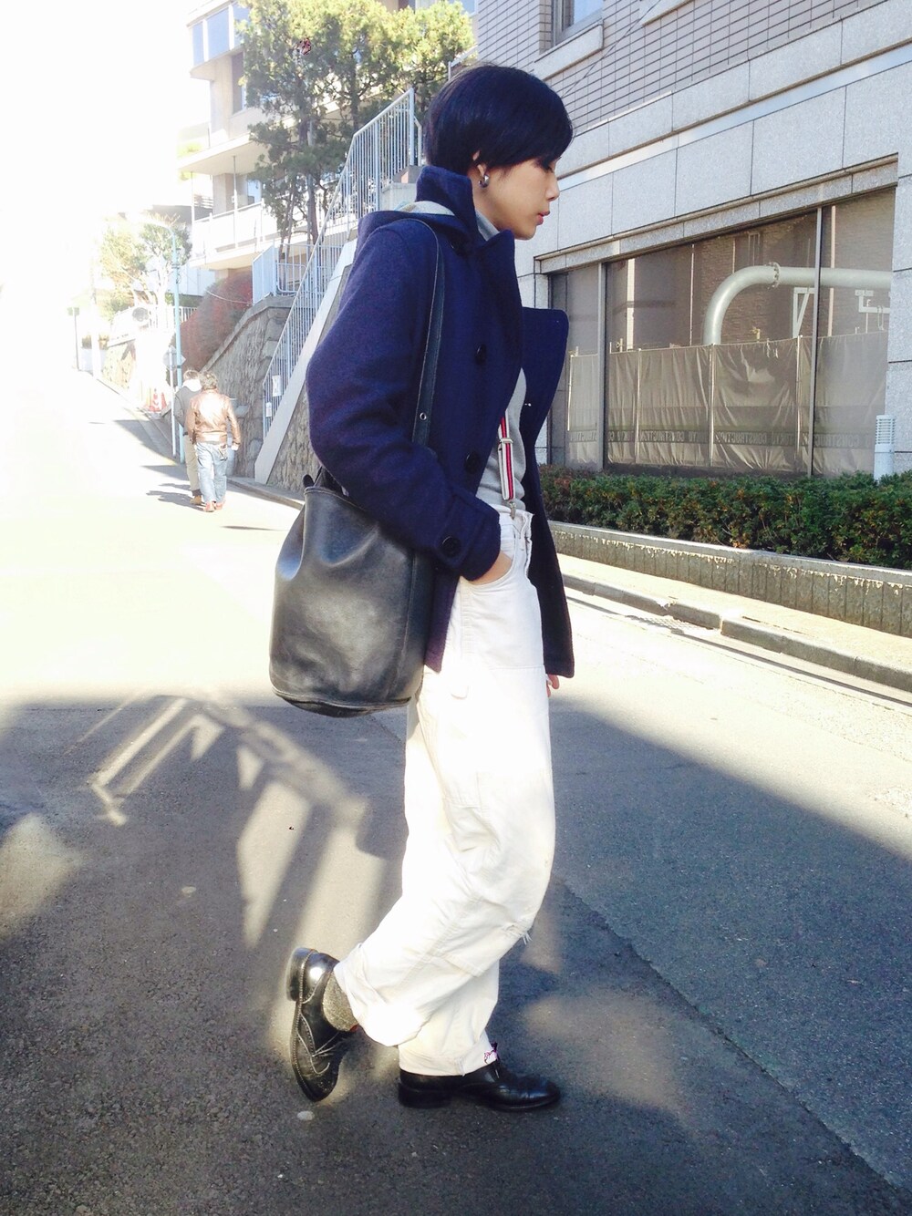 asakaのピーコート「BULLHORN/"double face single pea coat" 」を使ったコーディネート