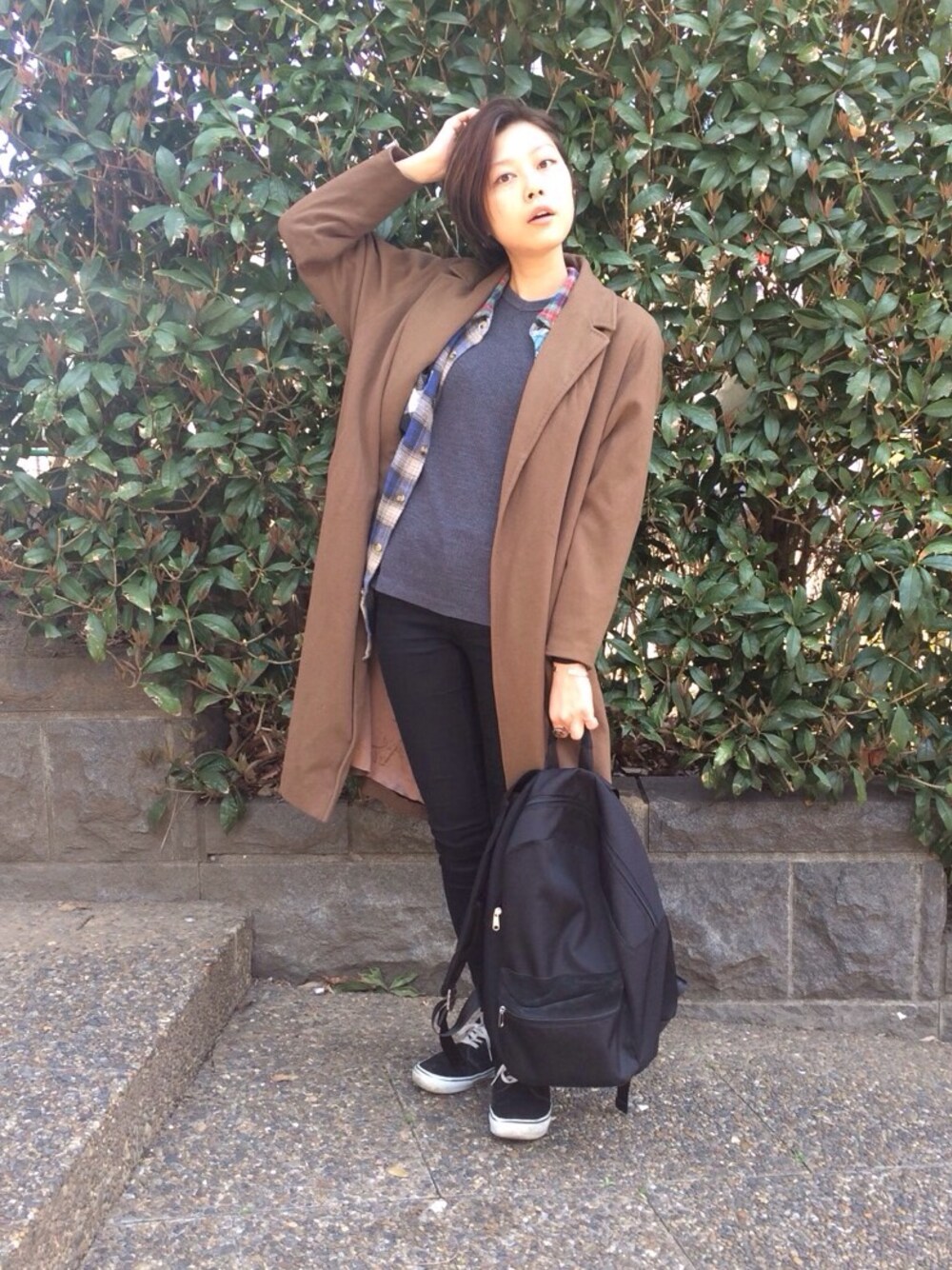 asakaのチェスターコートを使ったコーディネート