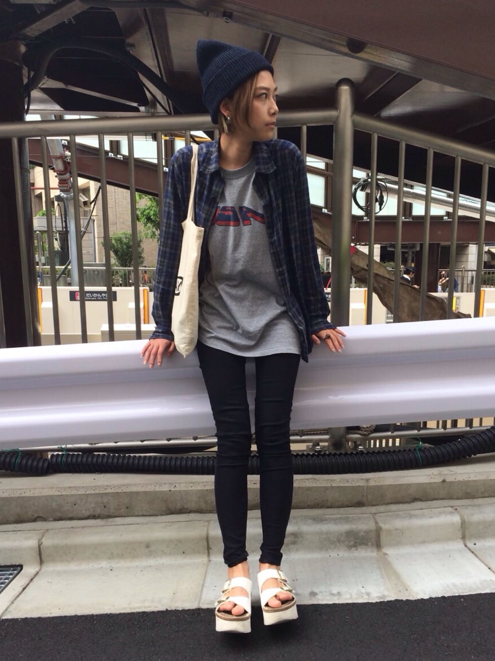 春はまだまだニット帽! NYでUSA Tシャツ 普通に古着屋さんで買ったけど、 ちょっと恥ずかしかった思い出付き♡ ナイスよれ感◎