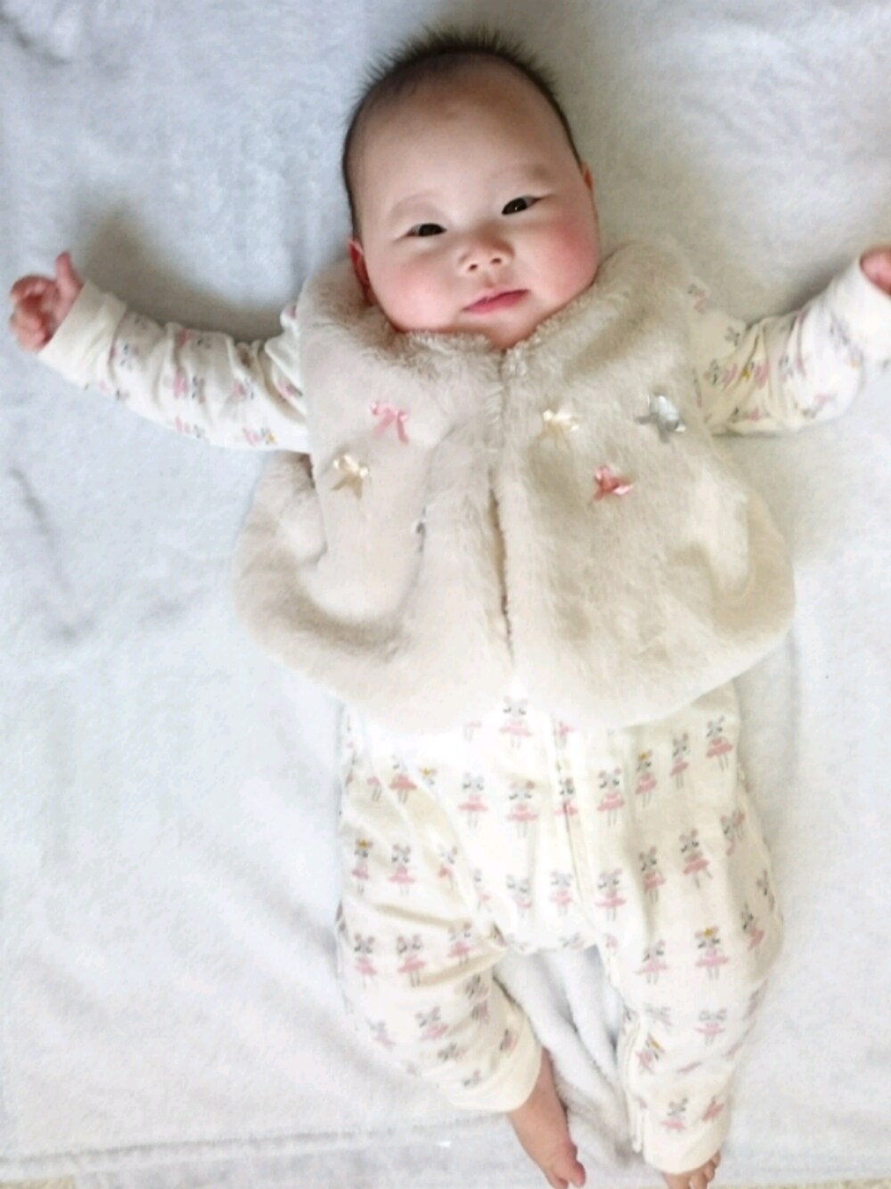 体温調節しやすいベスト✨ ふわふわとリボンが冬っぽい💕