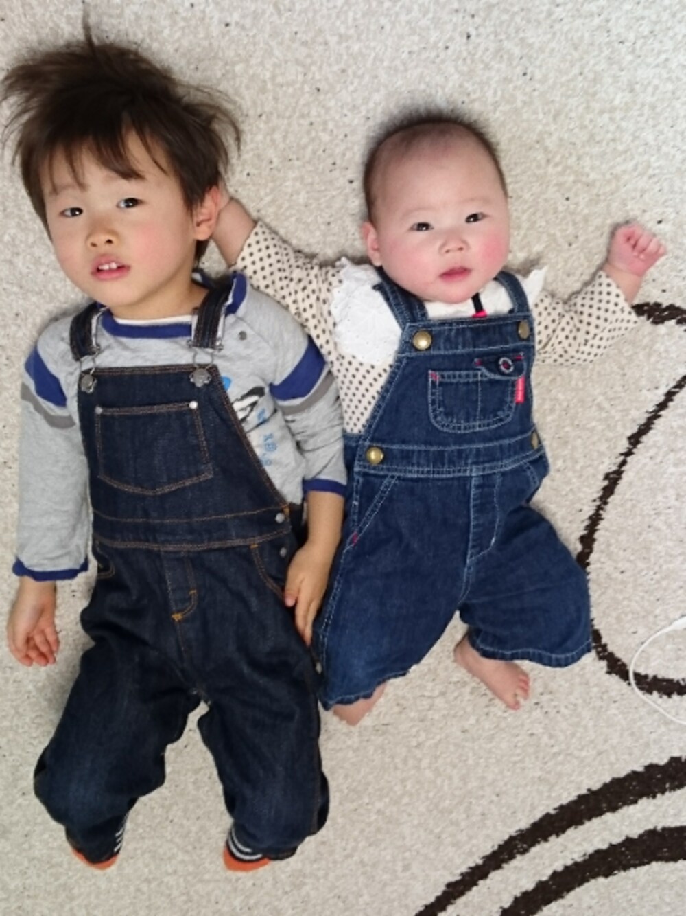 今日はお揃いコーデ🤣 お兄ちゃんのお下がり大活躍😀