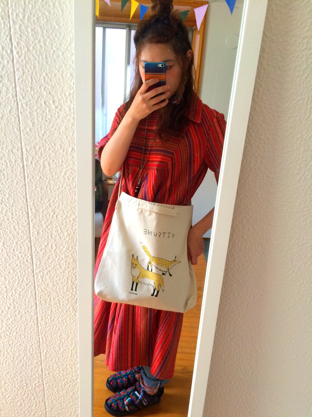 古着のワンピースとキツネのバッグがお気に入りです。今日も暑い