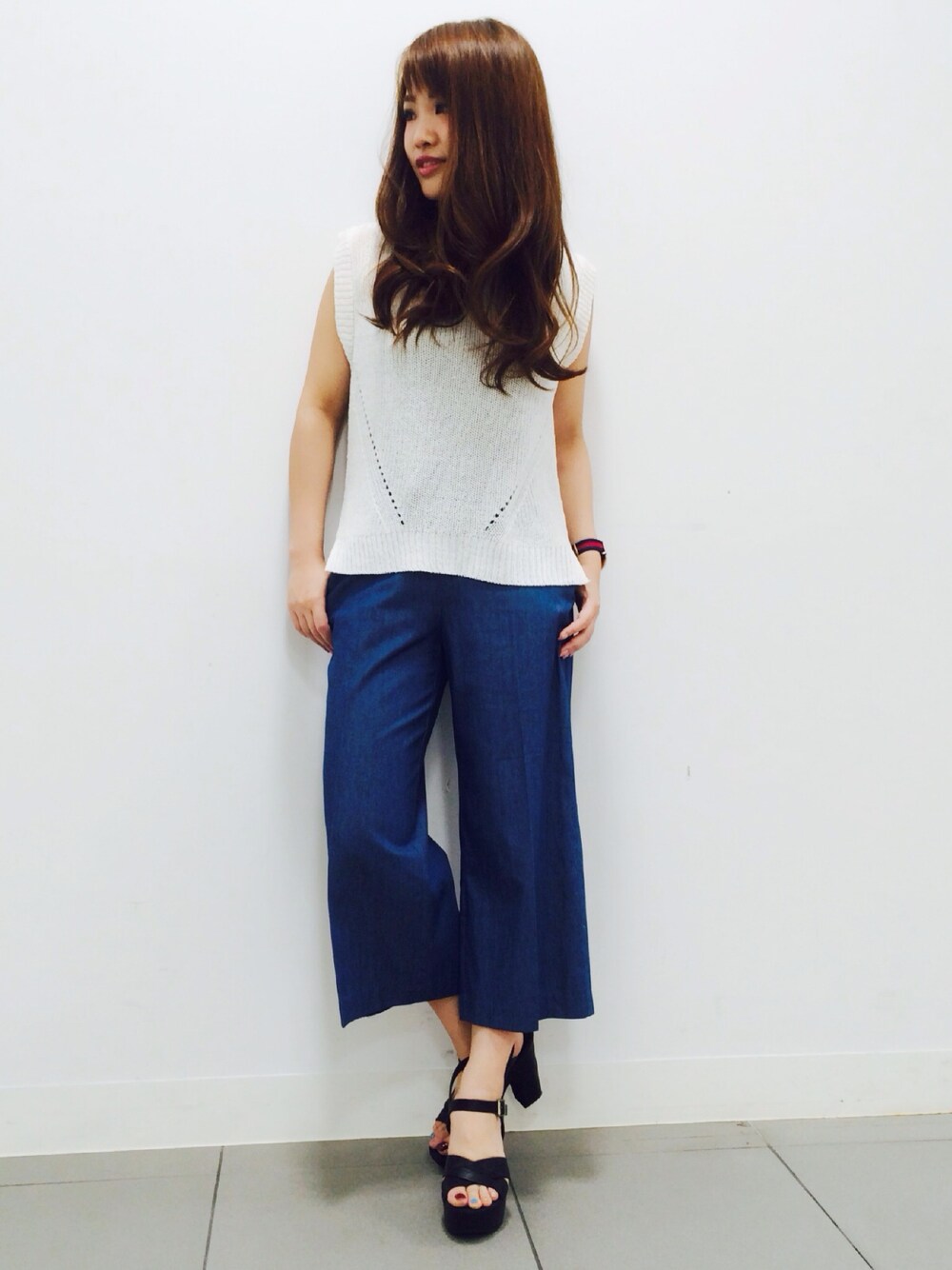 皆様こんにちは🙌☀️ 本日はシンプル大人コーディネート✨ キレイなラインのガウチョパンツに 今年大人気のノースリサマーベスト❤️ いろんなお洋服にチャレンジも とても楽しくて大好きなんですが 一周回ってシンプルって やっぱり可愛い!って時期が 私は定期的に訪れます😊 2点以上お買上げで セール除外品も 10%offのフェアーも 只今開催しておりますので ぜひ店頭にもいらして下さいませ❤️