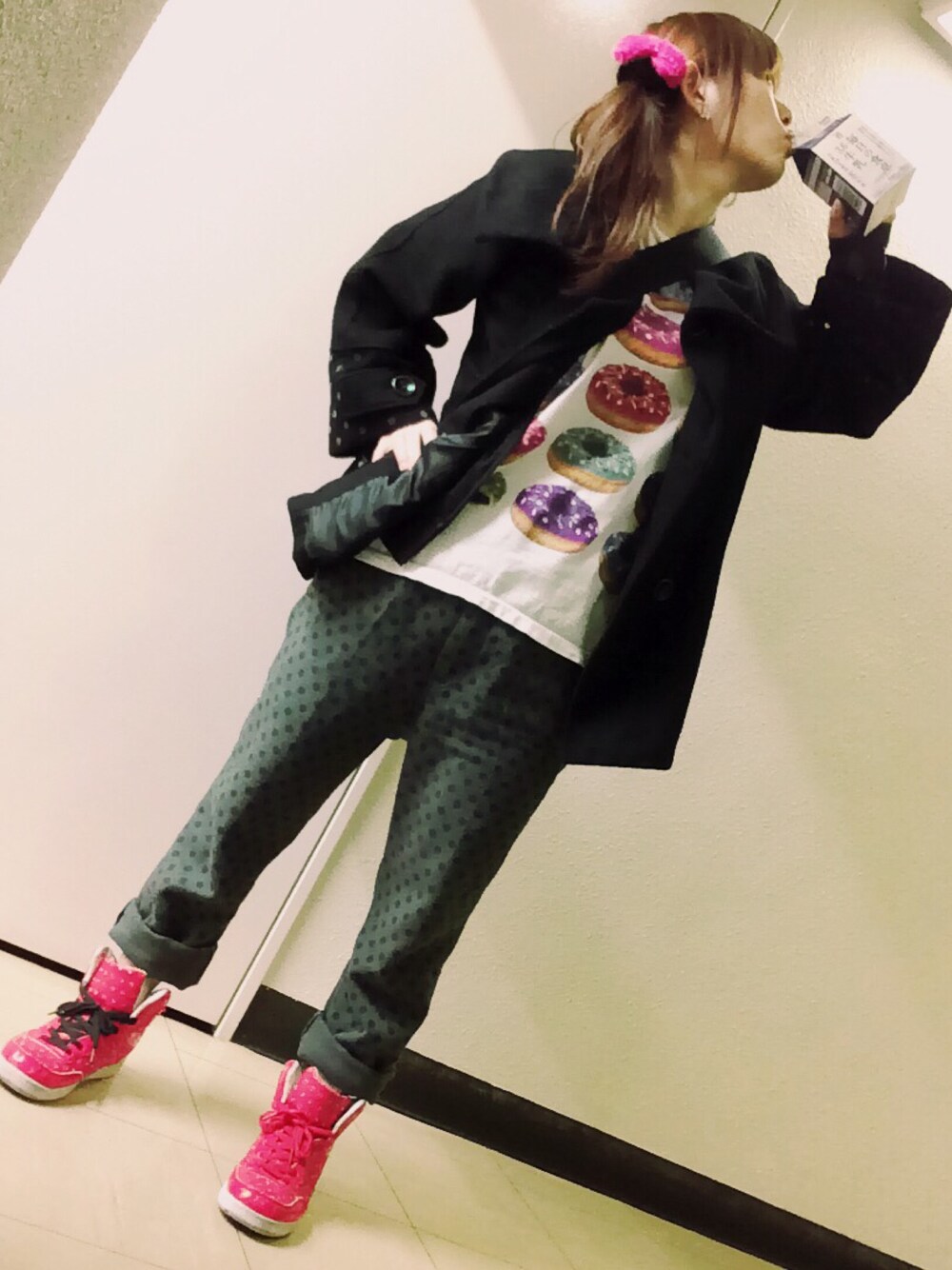 2015.12.02 ドーナツのTシャツに牛乳をコーディネート。 ぐびぐびぷはー。 背は伸びませんでした。