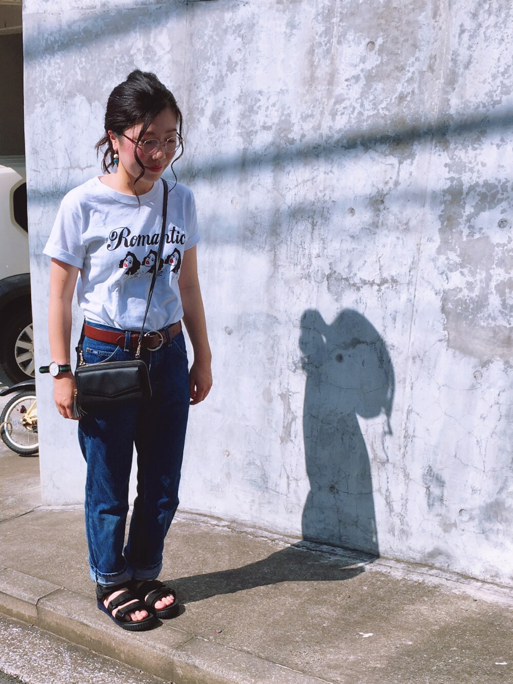USEDコーデ☻✨ お気に入りのTシャツと💕 たまには、高めのポニーテール。