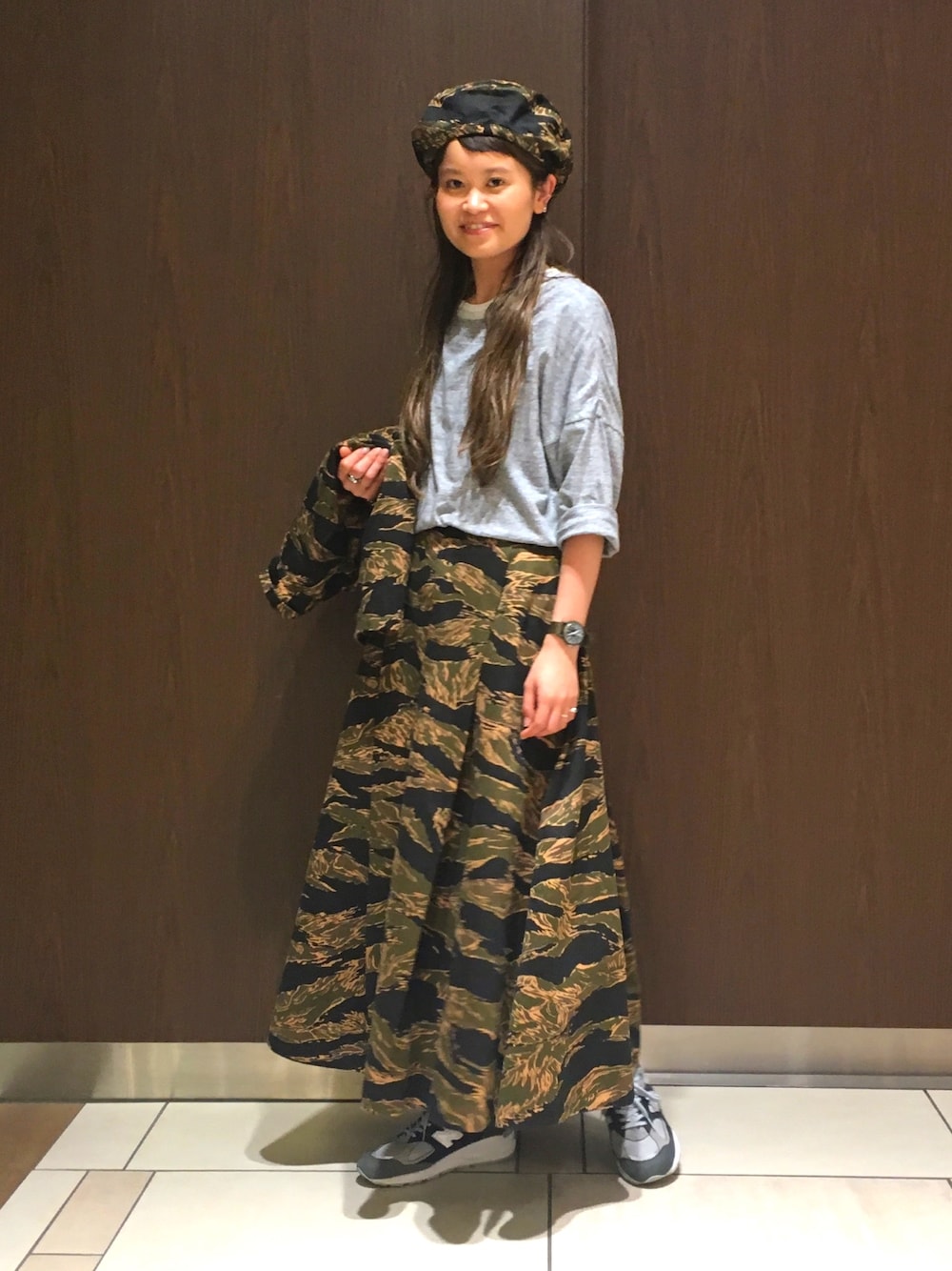 ASAMI OKANOのスカート「BUZZ RICKSON'S × BEAMS BOY / タイガーストライプ ロングスカート」を使ったコーディネート