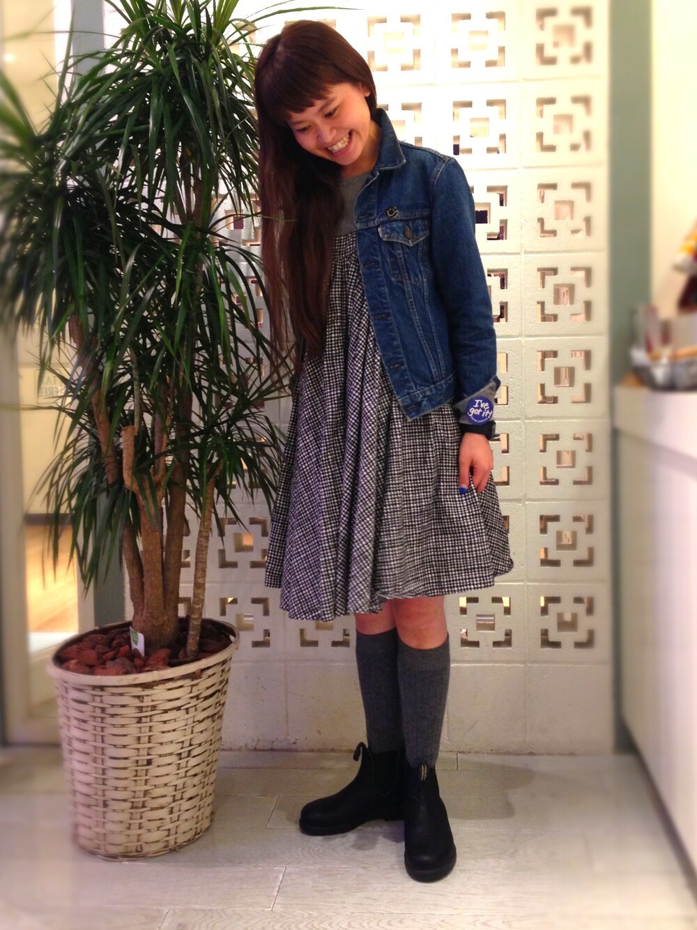 本日は、 どうしてもやりたかったコーディネート。 BEAMS BOY チェック 肩リボン キャミワンピース × BEAMS BOY ソリッド リブ ハイソックス 相変わらずこちらのキャミワンピース好きです。