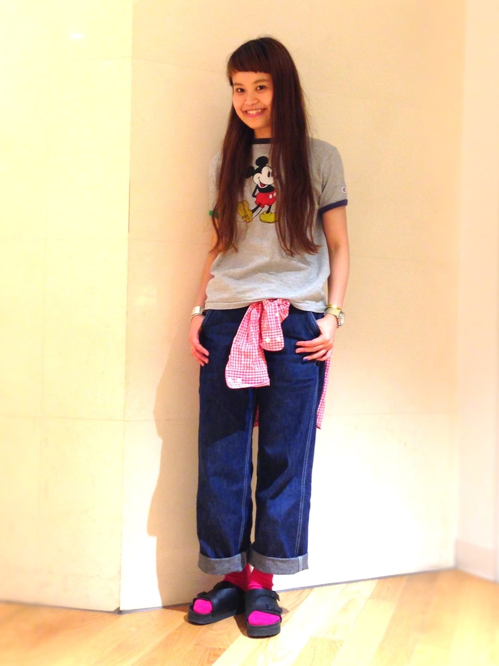 ASAMI OKANOのTシャツ/カットソー「CHAMPION×BEAMS BOY / リンガーTシャツ (Mickey Mouse)」を使ったコーディネート