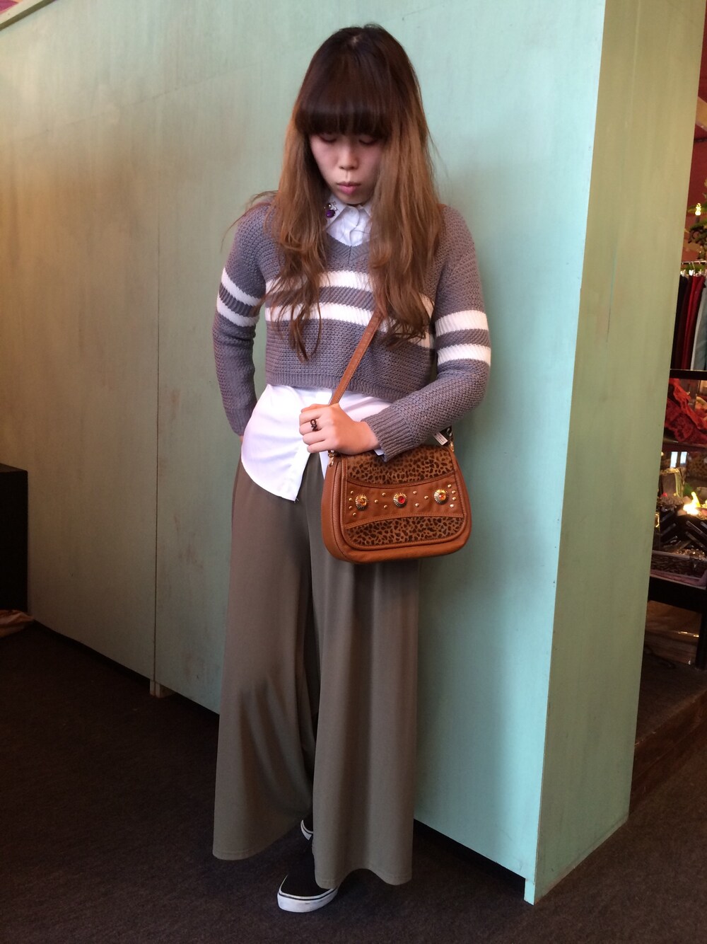ショート丈のニットにワイドパンツを合わせました。 珍しく大人コーデです☆