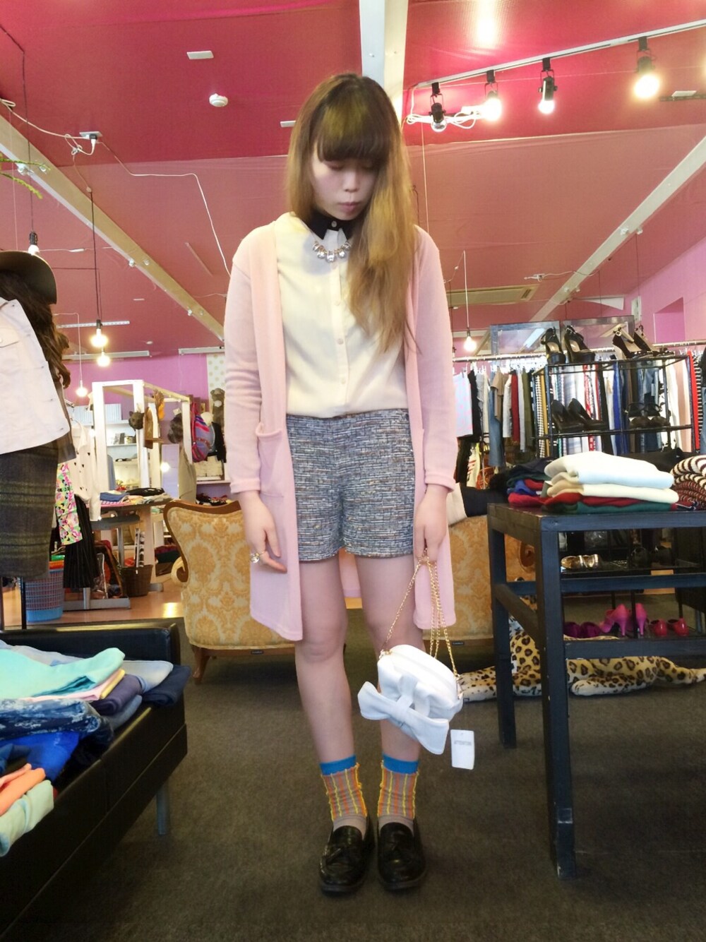 珍しくキレイ目な感じのコーデです。 ツイードですが、全体のトーンを合わせて軽い印象にしました◎ outer/FULL shirt/FULL pants/FULL bag/FULL other/私物