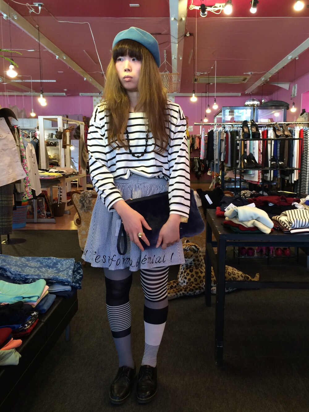 フレンチマリンコーデです☆ ボーダーのトップスに刺繍入のスカートを合わせて、モノトーンでまとめました。 かわりにベレーに色をもってきました tops/FULL skirt/FULL necklace/USED other/私物