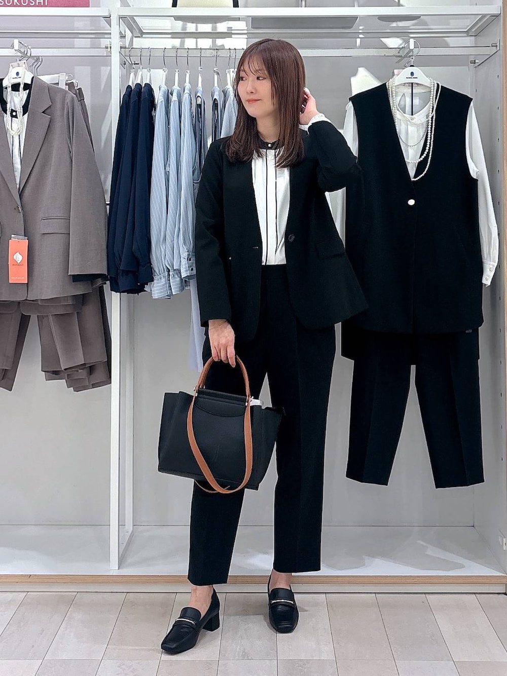 *グローバルワークゆめタウン廿日市* 【普段の着用サイズ】 トップス→Mサイズ ボトムス→Mサイズ シューズ→Mサイズ(23.5cm) ◽︎30代 ◽︎161cm / 普通体型 (腰回り太め) ジャケット→Mサイズ 普段通りのサイズでピッタリです! 通年して使える生地でシンプルなので着回せます! Vネックで顔周りもスッキリ👌 程よい着丈で上半身コンパクトにスッキリ見えます! ブラウス→Mサイズ 普段通りのサイズで良いです! 配色デザインが一味違った感じで楽しんでいただけるブラウスです👏 ボトム→Mサイズ 普段通りのサイズでちょうど良いです! ウエストは後ろにゴムが入っているのでストレスなく履いて頂けます◎ 前にタックが入っているので、気になる腰回りをカバーしてくれます♪ カラバリ豊富でオンオフ使えるのでオススメです◎ シューズ→Mサイズ 23.5cmでちょうどよかったです! 太めなヒールで安定感があり、ヒールが苦手な方も履きやすいです!