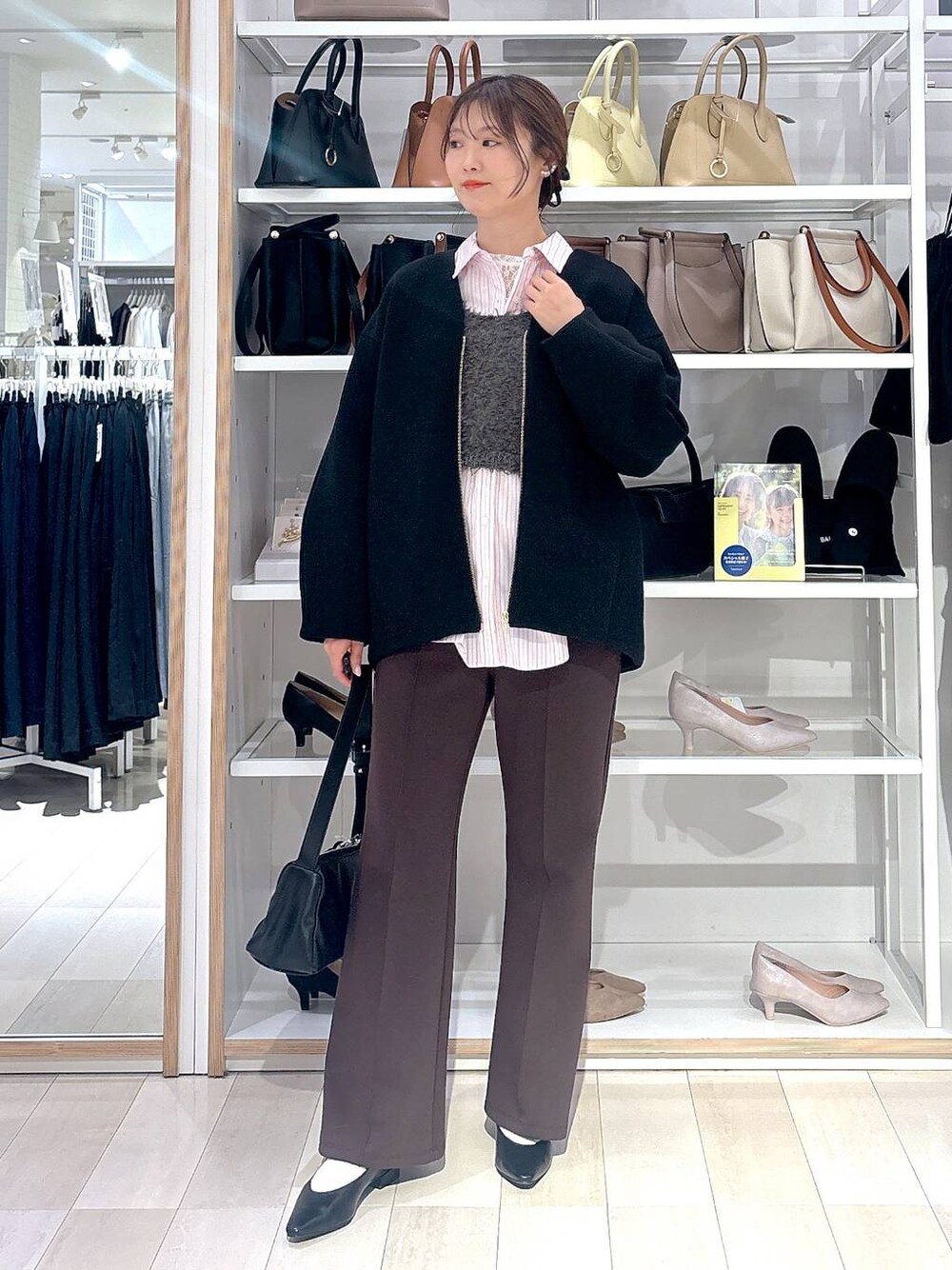*グローバルワークゆめタウン廿日市* 【普段の着用サイズ】 トップス→Mサイズ ボトムス→Mサイズ シューズ→Mサイズ(23.5cm) ◽︎30代 ◽︎161cm / 普通体型 (腰回り太め) インナー→Mサイズ 普段通りのサイズで良かったです! 総レースのデザインが可愛い🩷 色々なアイテムと重ねてチラ見せするのがオススメ🥰 シャツ→Mサイズ 普段通りのサイズでもゆったり着れます! 長めの着丈で気になる腰回りもカバーしてくれます😇 シワになりにくいのでお手入れしやすいです👏🏻 ベスト→Mサイズ 前後2wayで着れちゃうモシャモシャベスト🌸 シンプルデザインとリボンで印象変えて着れます! 重ねるだけでオシャレに♡ ボトム→Mサイズ 普段通りのサイズでバッチリでした👌 脚周り程よいゆとりのフレアシルエットでスッキリ履けます👖 ハリ感のあるスウェット生地で履き心地良くて、綺麗見えします☺️ シューズ→Mサイズ 普段通りのサイズで良いです! つま先に向かってスッキリしたデザインなので、足幅広めな方は少し窮屈に感じちゃうかもです。 柔らかい生地で履き心地は良いです🥿