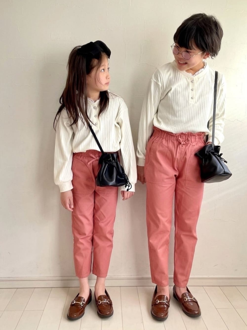 春の ブランシェスコーデ♡ 女の子ぽくて 可愛い〜♡ パンツはデニムもあったから 迷ったんだけど 春は明るい色が着たくなるよね♡ コロナ早く落ち着けー(´°̥̥̥̥̥̥̥̥ω°̥̥̥̥̥̥̥̥`) (131cm/29kg) (151cm/42kg) 見ていただき ありがとうございます✨