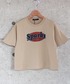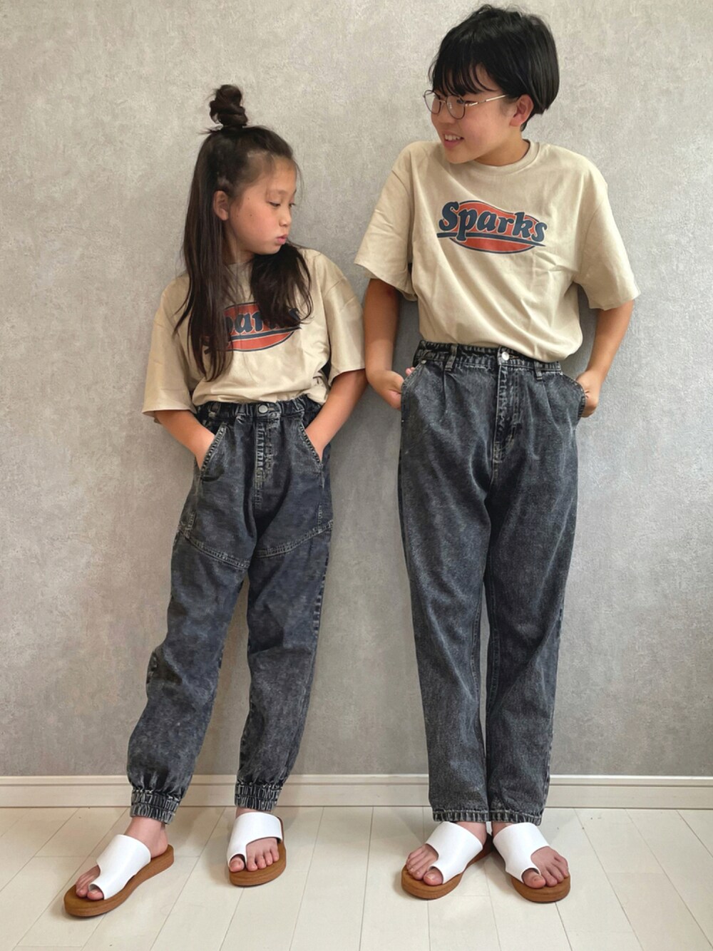kii_memeのTシャツ/カットソー「ビッグシルエット短丈フリル袖プリントTシャツ キッズ」を使ったコーディネート