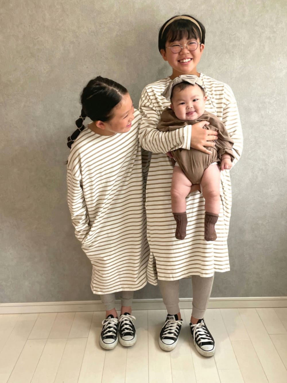 3人ーー3連続! お分かりですか?… めめが全くこちらを向きません😂 ゆるーく♡ ボーダーワンピ シルエットが たまらん♪ ロンパースもこれまた ゆるシルエットにシンプルロゴが かわいすぎました♡ (12歳 154cm/44kg) (10歳 135cm/31kg) (5month 7.5kg) 見ていただき ありがとうございます✨