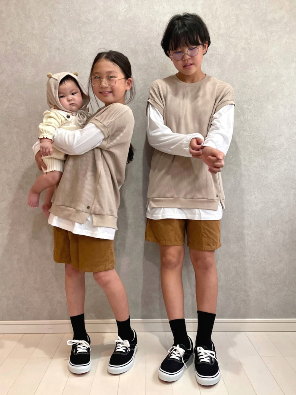 ベージュ♡ 重ね着風トップス♡ どんな ジャンルでも使えそう(*´∇`*) 後ろ姿も可愛いのよね〜 9月も ありがとうございました✨ (135cm/31kg) (154cm/44kg)