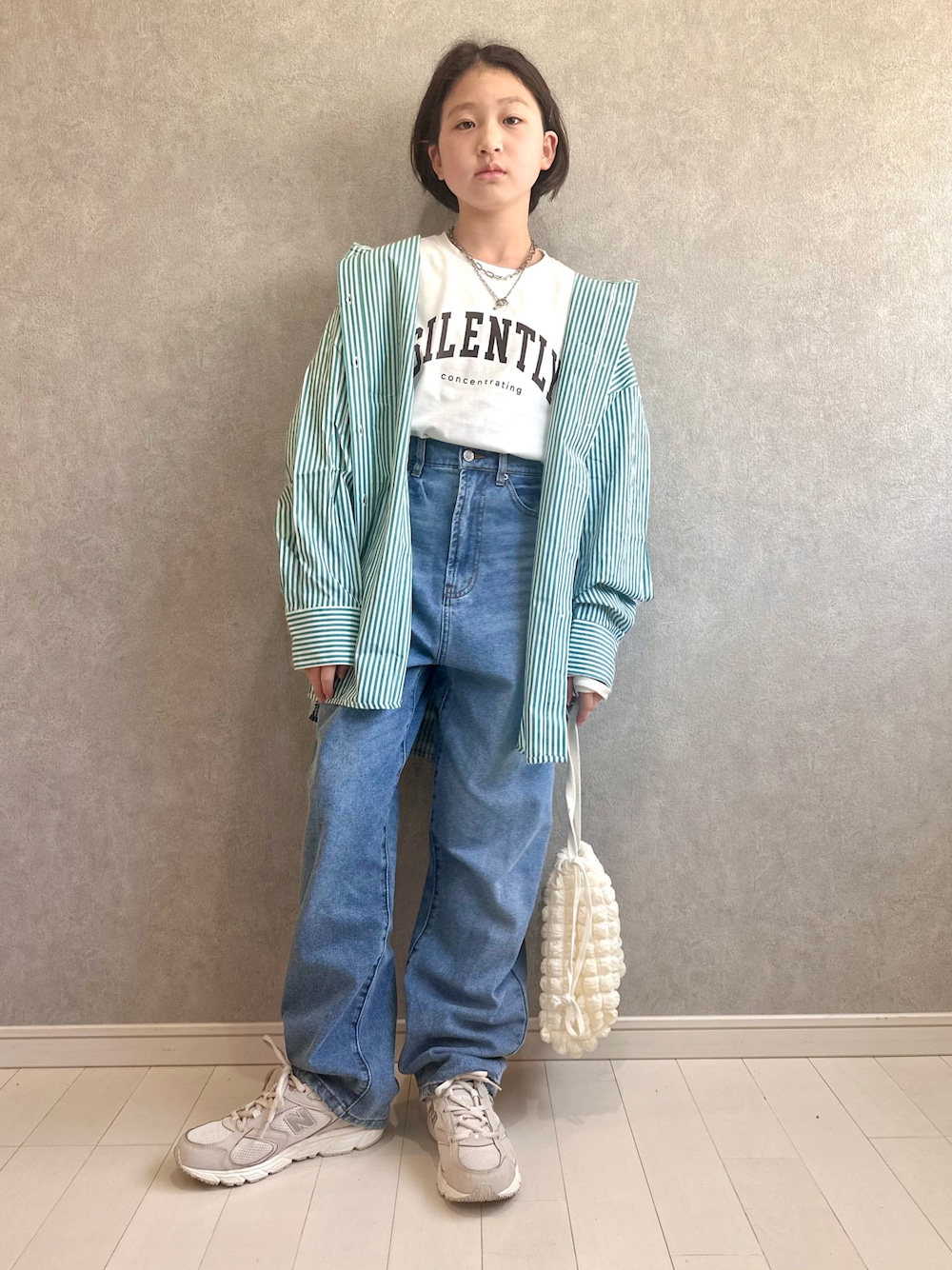 春のシャツスタイル♡ 肌寒い日は羽織として 中に半袖を着て 暑くなったら脱げばいい♪ オーバーサイズの ストライプシャツ可愛い〜♡ 見ていただき ありがとうございます✨ (147cm/38kg)