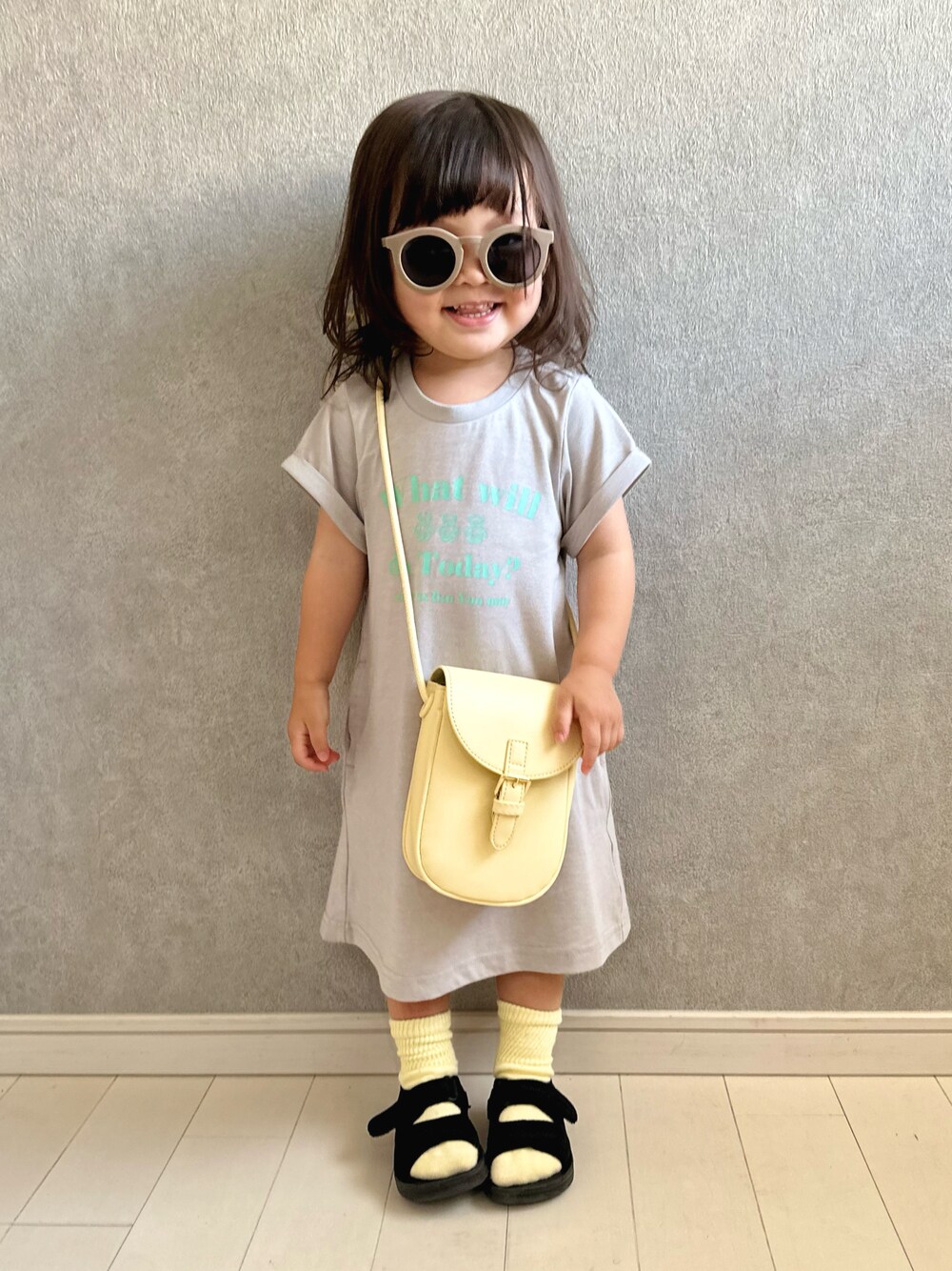 #ポシェット このワンピース 技ありな1枚でバックスタイルが めちゃくちゃ可愛い♡ ロゴの色味も好き…♡♡ パステルカラーの差し色で 夏コーデ(//∇//)
