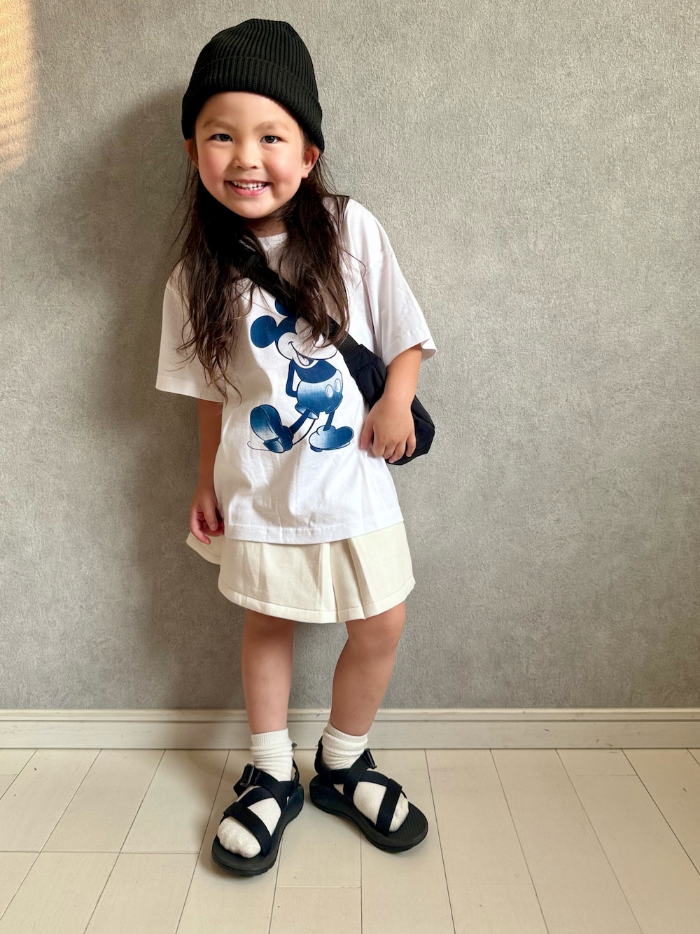 UNIQLOコーデ。 シンプルモノトーン♡ Chacoのサンダルは めめのお下がり!! つなちゃんが履けるようになるなんて🥺✨ 100cm/16kg トップス120 パンツ 110
