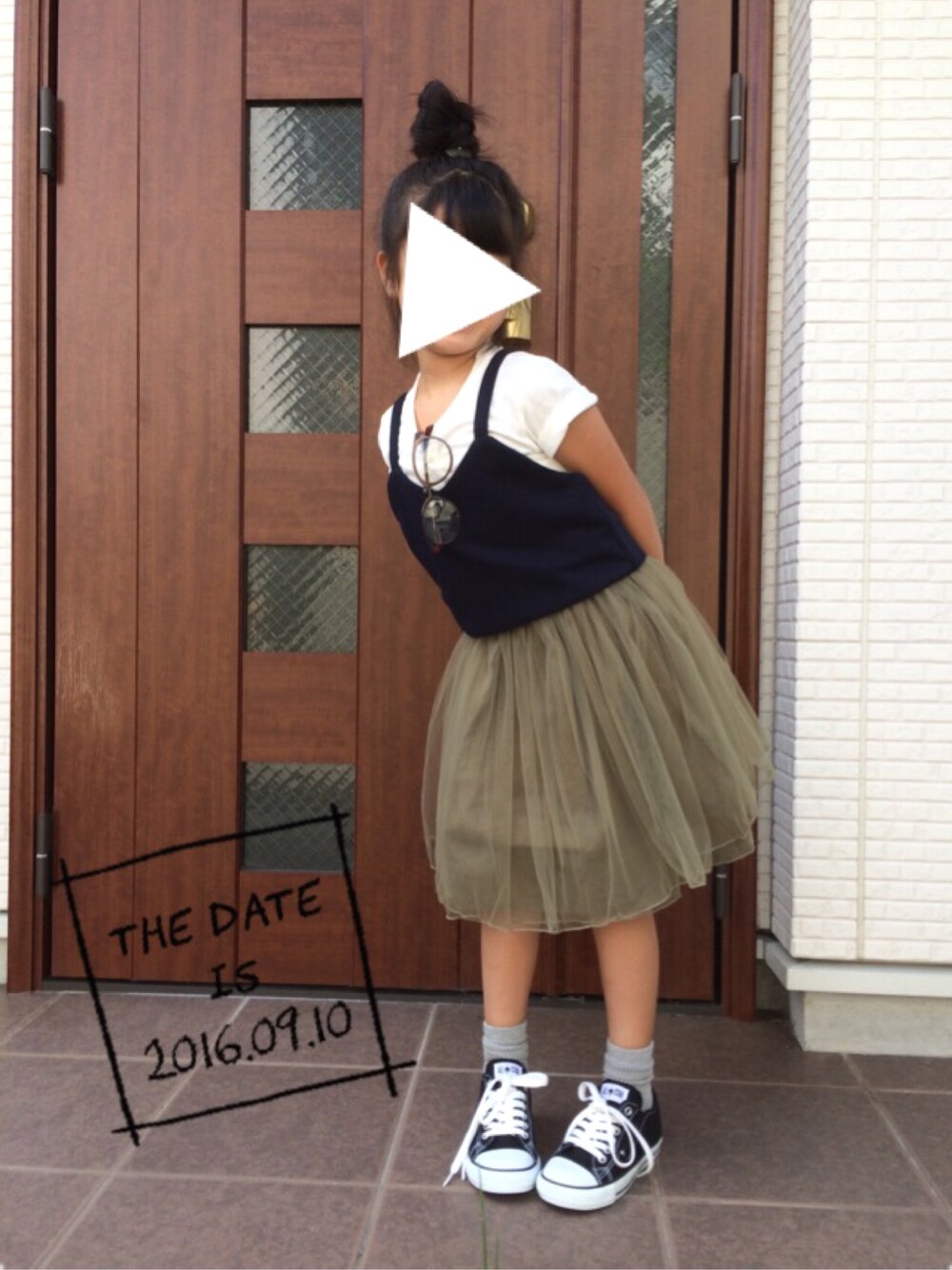 今日のお出かけコーデ😍 娘お気に入りのチュールスカートで🤗💛 ただ、朝早かったから顔パンパン(笑) 浮腫みすぎやろ!(笑) でも、母的には大好きなコーデです😍