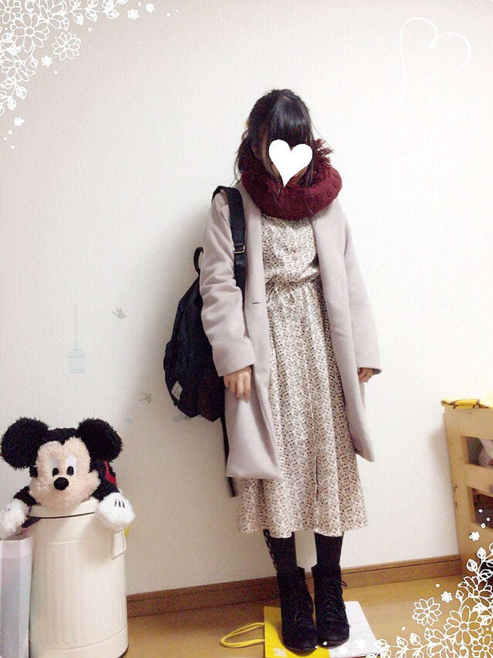 今年初の投稿です(´-`).。oO遅… ワンピースはリンゴ柄です☺︎ 柄タイツと合わせるのが最近のお気に入りです♡ 今年もよろしくお願いします💐