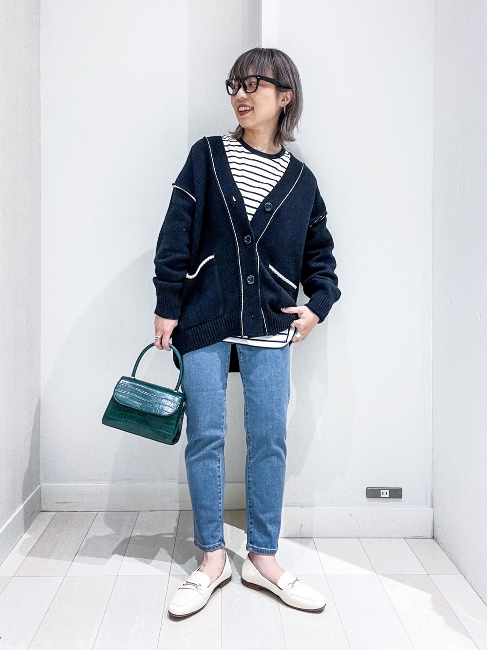 バヤコ(Adastria 本部)のメガネ「ブラックフレームメガネ」を使ったコーディネート