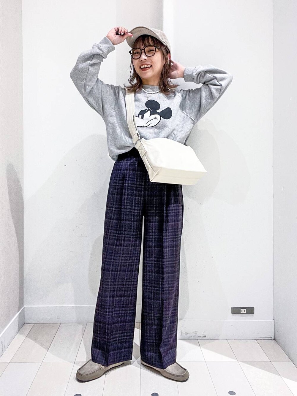 スウェット×チェックパンツの組み合わせで古着っぽくまとめたスタイル♡シンプルでインしない着こなしでもこんなに今っぽく◎ →スワイプ→で全角度&動画もご覧いただけます♪ ▶︎スウェット プリントがコーデのポイントにピッタリなスウェット! トレンドの短め丈にややコンパクトなシルエットですが腕周りや胴回りは余裕あり♡スカートやワンピと相性抜群なデザイン。低身長さんもバランスとりやすく、薄手のインナー1枚くらいなら着てもまだ余裕あります。ウエストが隠れるくらいの丈。 ▶︎パンツ 美シルエットシリーズのワイドパンツ♡ワイドすぎず細すぎない美脚シルエットなのにウエストゴム入り! 穿き心地楽ちんなのにストレートな形が広がらずスッキリ見せてくれます◎オンオフ使える素材なのもうれしい♡ ウエストはジャストサイズ。ウエストはホックとボタン+ジップですが後ろのゴムでお腹いっぱい食べられそう!笑お尻、太ももは程よいゆとりでピタピタせず脚の形も出ません。 足首のギリギリ隠れる丈ですが股上がやや深めなので、ハイウエストで穿いて足首丈に調節もできました◎ 《 staff board & Instagram 毎日更新中!》 ではファッションからプライベート、LIVEも配信! どちらもフォローお待ちしてます٩( 'ω' )و ↓コーディネートが参考になったらこちら↓からカートに入れてもらえると嬉しいです♡