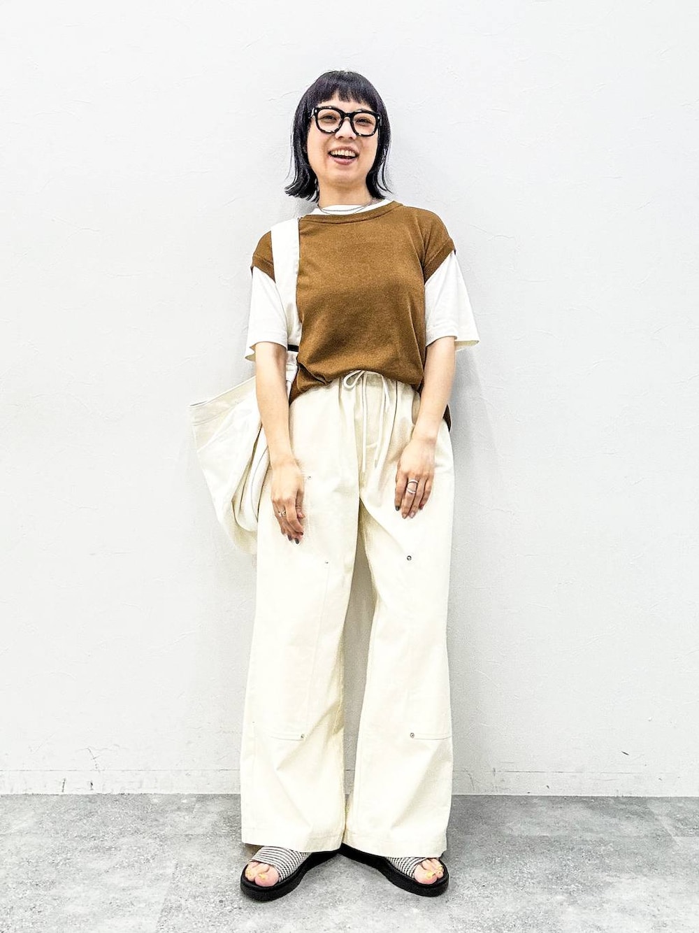 夏にマストなTシャツスタイルはベストを重ねるだけで脱!いつものコーデに♡ちょっとメンズライクにまとめてみました◎ →スワイプ→で全角度&動画もご覧いただけます♪ ▶︎ベスト 夏にうれしいサラッと薄手のニットは1枚でも重ね着でもOKなデザイン。フレンチスリーブくらいの袖が気になる二の腕の付け根と肩を隠してくれます◎ゆったりシルエットでベタつかない生地なので夏のレイヤードスタイルに使いやすい♡ ▶ Tシャツ 夏マストなTシャツはプリントが主役になってくれるものだと一枚でもサマになっておすすめ◎薄すぎず暑すぎないしっかりとした伸びの良い生地で透けもなし。全体にゆったりめでインナーとしてもメインとしても活躍してくれます♡ ▶︎パンツ ウエストゴムで穿き心地楽ちんなペインターパンツ♡しっかりとした生地にかなりワイドなシルエットなので全く脚のラインが出ず、下着の透けも気になりませんでした!ハイウエストで穿いてかかとくらいの丈。 《 staff board & Instagram 毎日更新中!》 ではファッションからプライベート、LIVEも配信! どちらもフォローお待ちしてます٩( 'ω' )و ↓コーディネートが参考になったらこちら↓からカートに入れてもらえると嬉しいです♡