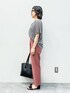 オフィスやちょっときちんとしたい場面にもおすすめなきれいめコーデ♡くすみピンク×ギンガムチェックは可愛い色柄大好きな大人女子にこそおすすめしたい組み合わせ! →スワイプ→で全角度&動画もご覧いただけます♪ ▶︎ブラウス ゆったりシルエットにさらさらとした肌触り抜群な素材で着心地楽ちん♡かなりたっぷりしているのでインナーにしっかり生地のタンクを着てもまだまだ余裕あり◎ 私は普段Mですが、こちらはSで着た方がスッキリ見える気がしました!いつもよりワンサイズ下での着用もおすすめ◎ゆったりしている分風通しも良くて快適! 袖は肘にかかるくらいまでありヒラヒラ揺れる袖のおかげで腕の太さも誤魔化せているように感じました♡ いつもよりワンサイズ小さめを着てインナーなしでOK、いつも通りのサイズならインナーあると安心。お尻の隠れる丈でした! ▶︎パンツ 美シルエットシリーズからプレミアムスリムストレートが登場!お尻〜太ももにかけてはゆったりと、膝から下は裾に向かってゆるやかに細くなったデザイン。 テーパーパンツだと細身すぎるけどワイドだと大きすぎる…中間があったら良いのに!という方にピッタリ◎ かなり脚のラインが補正されて見えるのできれいめにもカジュアルにも着れちゃいます♡ ウエストは後ろがゴムでご飯もたくさん食べられそう!全体にゆったりめですが裾はスッキリとしていて足捌きも良かったです! 《 staff board & Instagram 毎日更新中!》 ではファッションからプライベート、LIVEも配信! どちらもフォローお待ちしてます٩( 'ω' )و ↓コーディネートが参考になったらこちら↓からカートに入れてもらえると嬉しいです♡