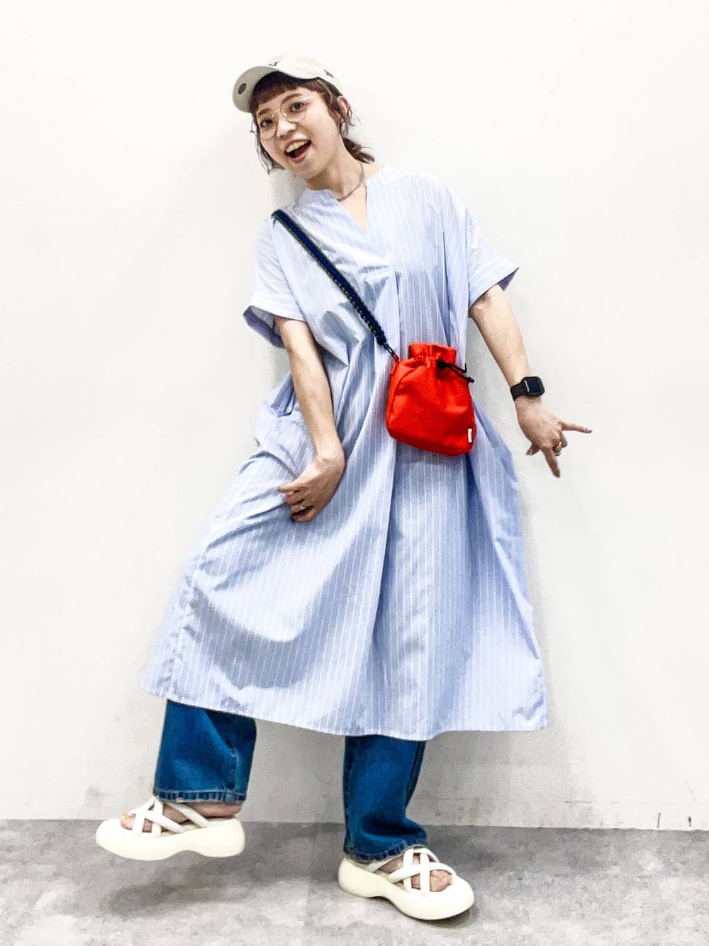 夏のワンピーススタイルはシンプルになりがち!今年はぜひレイヤードや小物をプラスして変化をつけてみて◎ →スワイプ→で全角度&動画もご覧いただけます♪ ▶︎シャツワンピ ゆったり締め付けゼロで楽ちん!ガバッと着れちゃうシャツワンピは身体のラインも出ず風通しも良いので夏にぴったり♡スキッパーデザインが顔まわりやデコルテをスッキリと見せてくれます◎胸元の開きはギリギリ胸元が見えないくらいですがキャミやタンクを着ておくと前屈みになったときも安心です!カップ付きインナーがおすすめ。膝下くらいの着丈、肘下くらいの袖丈でした! ▶︎デニム ワイドだけどワイドすぎないストレートっぽい定番デザインのデニムパンツ。ウエストは少し余裕あり。腰まわりはぴったりですが、生地の硬さのおかげで下っ腹が悪目立ちする事もなく、スッキリと見せてくれました。ウエストに余裕があるので苦しい!という感じではないフィット感。太ももから下は広がらず細すぎない絶妙な太さで脚のラインをカバー。かかとにかかる丈でスニーカーともサンダルとも合うのでオールシーズン使えそう! 《 staff board & Instagram 毎日更新中!》 ではファッションからプライベート、LIVEも配信! どちらもフォローお待ちしてます٩( 'ω' )و ↓コーディネートが参考になったらこちら↓からカートに入れてもらえると嬉しいです♡