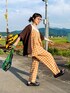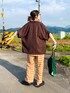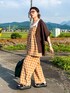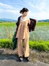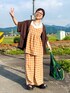 帰省した日のコーデ♡ 30度超でとにかく暑かったのでカップ付きインナーにキャミ&パンツのセットアップ+冷房対策のジャケットにしてみました◎ ▶︎インナー ショート丈なのでウエストまわりをインしなくていいのが涼しくて最高!生地も柔らかく着心地かなり良いです♡ 首元はデコルテが綺麗に見える開き具合でいやらしい感じもなく、肩まわりが開きすぎていないので肉感を生地の中に閉じ込められました!カップのホールドも強すぎず弱すぎず、胸が広がる感じもなかったです◎ 個人的に肩幅があるタイプなため1枚での着用は厳しいですが、上に何か羽織る分には肩周りも気になりませんでした! 家でならこれ一枚で過ごしたいくらい楽ちん! ▶︎キャミ&パンツ 今回旅行でキャリーバッグに詰め込んでいたのですがシワもつきにくく薄手で軽いのでかさばらず持ち運びストレスがかなり少なかったです!しかも上下別々にも着まわせるのでめちゃくちゃ旅行向きだなと思いました! サラッとした生地でペタペタ感もなく、すぐ乾いてくれるので汗染みの心配もなし!柄のおかげで飲み物の水滴が落ちても目立ちませんでした◎ キャミはかなりゆったりでバスト100cm以上の方でも着用できた上に肩紐の調整を背中のリボンでできてオーバーサイズのTシャツの上からでも袖がもたつかなかったです! パンツは総ゴムで締め付けゼロ!ウエスト100cmあるのにスッキリ見えするシルエットでトップスをゆったりシルエットにして着るとバランスよくまとまります♡ ▶︎サンダル これもめちゃくちゃお気に入り!見た目に反してとにかく軽くて買った日に履いていて全く足が疲れなかったのと、厚底すぎないので身長が高くてもバランス良いのと、スカートでもパンツでも靴下合わせでもいけるデザインが◎ バックルもテカテカしすぎず安っぽくなく大人な印象です!