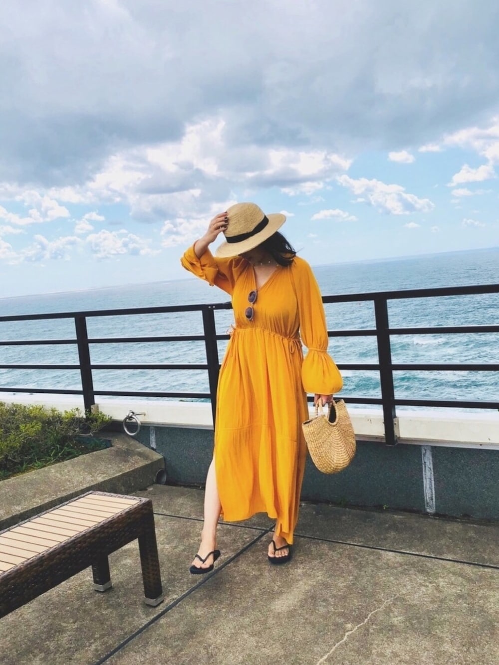 旅行コーデのつづき♪ emmiのお気に入りワンピース☺︎♪ ウォッシャブルで洗濯機OKだから、 子供がいるママに嬉しい❤︎