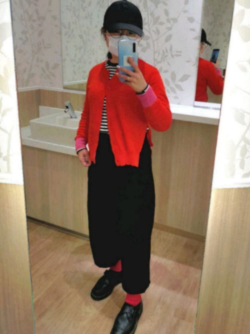 カーディガンはサイドスリットになってる可愛いお気に入り。 シンプルにボーダーをインしてあとは、カーディガンと同じいろのソックス。