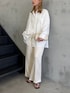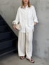シャツとサテンパンツのホワイトコーデ🤍 爽やかに大人ぽく🪻 ⚫︎骨格:ナチュラル ⚫︎パーソナルカラー:イエベ春 ⚫︎着用サイズ tops:M〜L bottom:M〜L shoes:22.5〜23.0cm