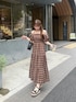 トレンド感のあるチェック柄のワンピース 一枚で決まるのでお出かけにぴったりな楽ちんコーデです🎶 【one-piece】 袖の部分はオフショルにしても、肩を隠してスクエアネックにしても使える2way仕様✨ バリューのある袖が肩周りを華奢に見せてくれます♡ スカートはティアードなのでふわっと広がるシルエットがかわいい! 背中のところがシャーリングになってるので、体に程よくフィットして着膨れしません◎ 【bag】 大人気のエンブレムボストンバッグ♡ ぷっくりとしたエンブレムデザインが大人可愛い⚜️ ペットボトルがすっぽり入るサイズで、小ぶりなのに収容力もあります! 黒のボストンバッグはひとつ持ってると便利です🎶 【shoes】 サンダルはシンプルなリボンで主張しすぎず普段使いしやすいデザイン! 厚底のウェッジソールなので、高低差が少なく安定感があります。 クッションも入ってるので長時間履いても疲れません♡ 普段24.5センチでLサイズぴったりです!