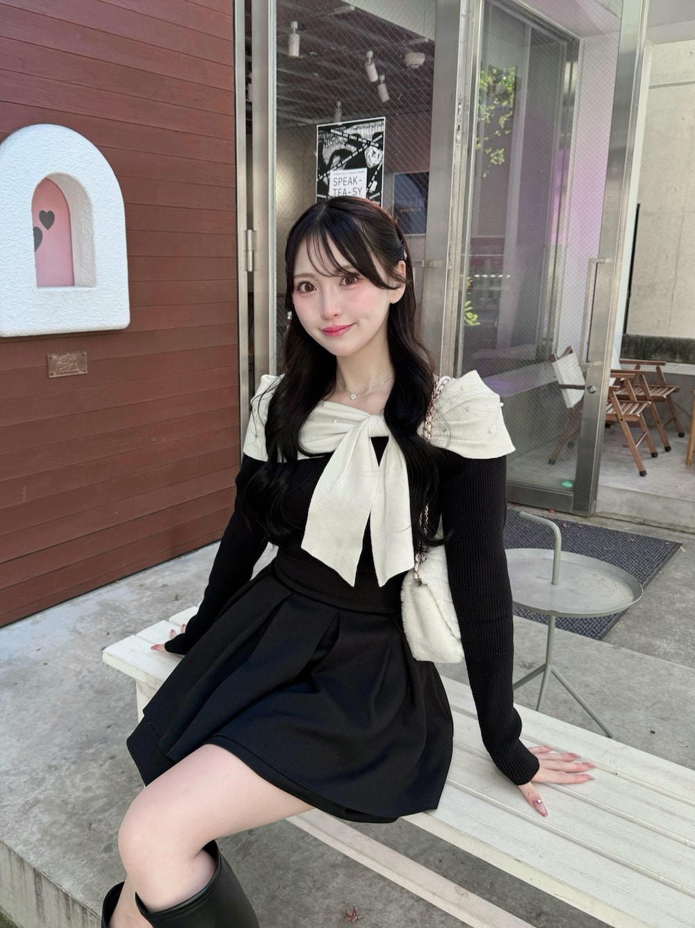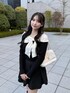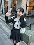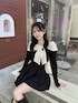 キラキラのビジューが散りばめられた 大きなリボンが可愛すぎるニットコーデ🎀 同色のスカートと合わせてワンピ風に着ました🖤 WEBとルミネ限定の特別なアイテム♡