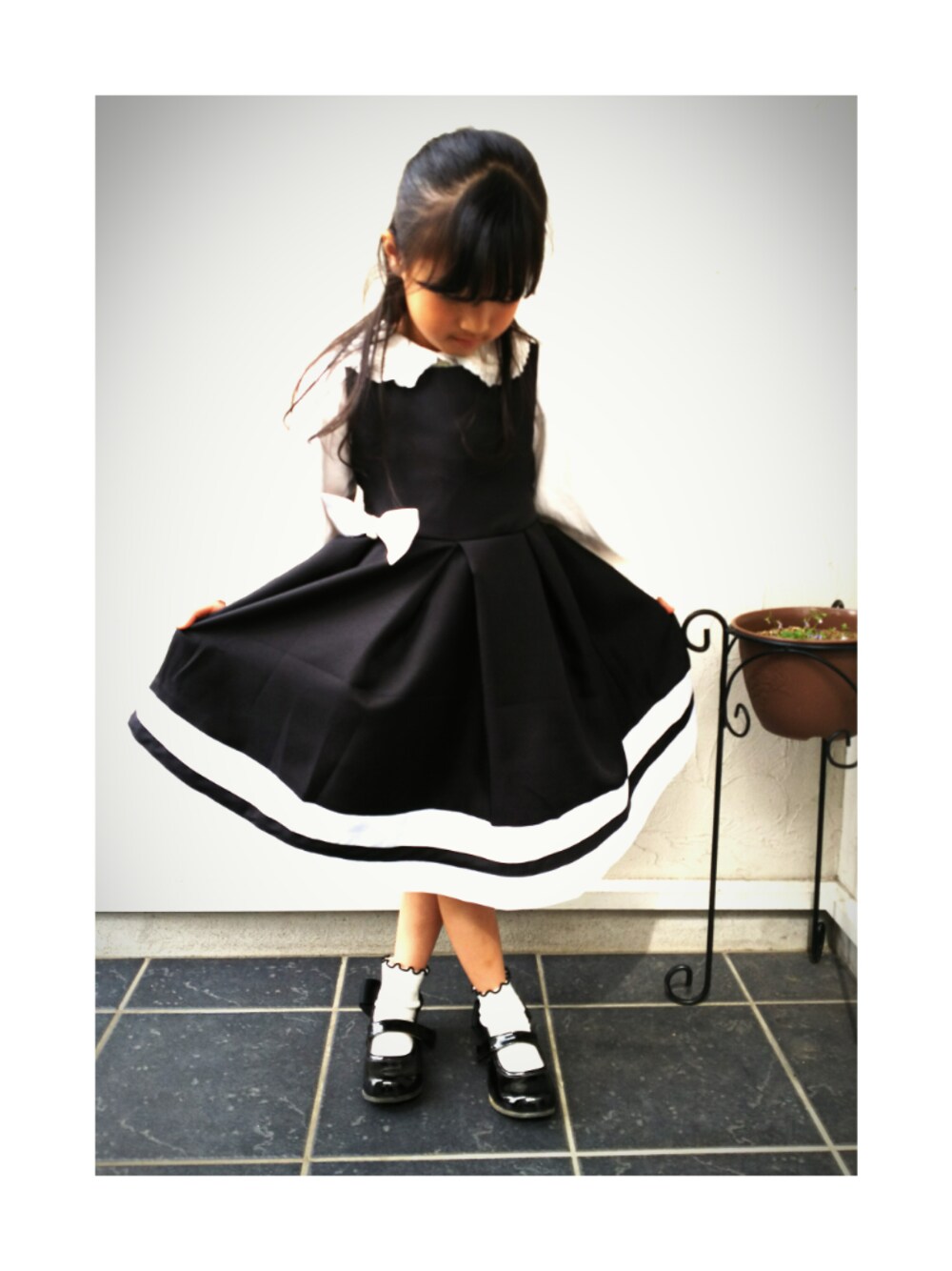 入学式コーデ゚・*:.。❁ ..... 普通の入学式ワンピじゃなく、ちょっとお嬢様スタイルのワンピにしました❁ 最初はボレロを準備していたのですが、 腰元のリボンやバックのリボンが隠れていたので、手持ちの襟が目立つブラウスに変更しました😅