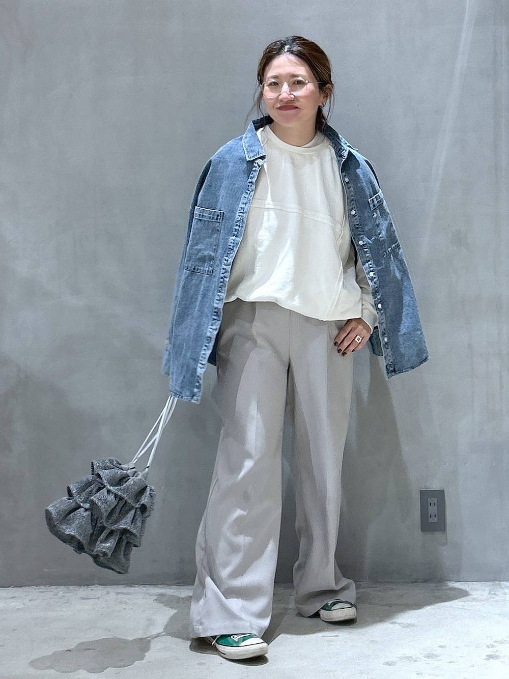 ケミカルウォッシュ長袖 ーーー オーバーサイズのデニムシャツは1枚でも羽織でも活躍する万能アイテム。 身頃にゆとりがあるのでインナーも合わせやすく、ベーシックシルエットは着回しやすさも〇 長袖はニュアンスもつけやすく、シーズン長くお使いいただけるアイテムです。 足元の緑のコンバースがポイント💚 差し色に🥰