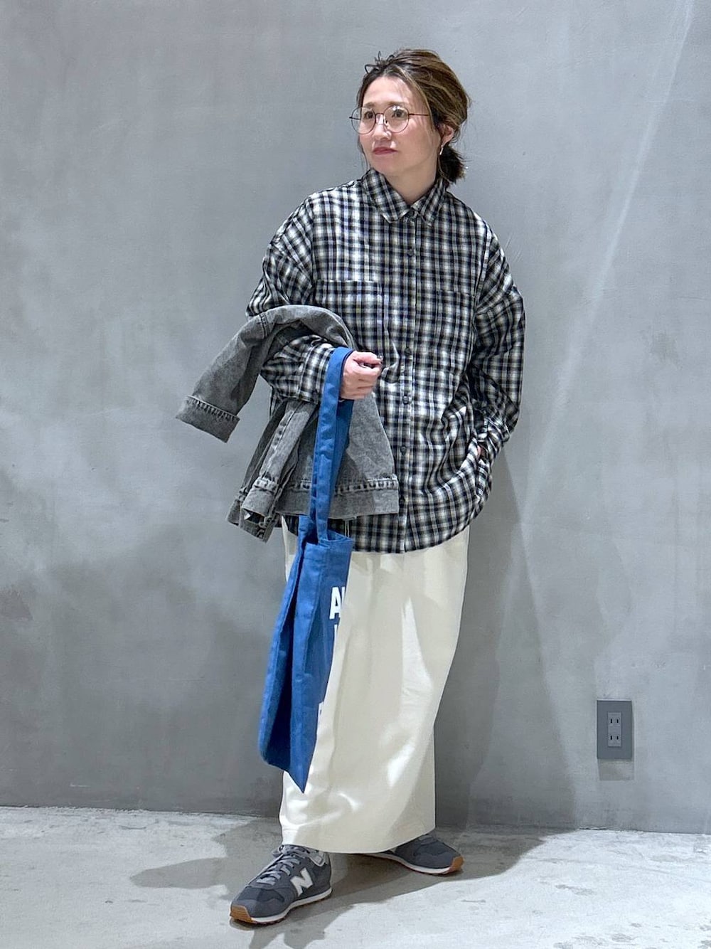 店頭コーデ🩶 チェックシャツ長袖 濃淡グラデーションのオンブレチェックは スタイリングにも馴染みやすいカラーの一枚◎ ゆとりのあるオーバーシルエットで ラフな着心地なのもポイント☺️ 裏起毛ジョーゼットスカート ウエストゴムで楽ちん!!!