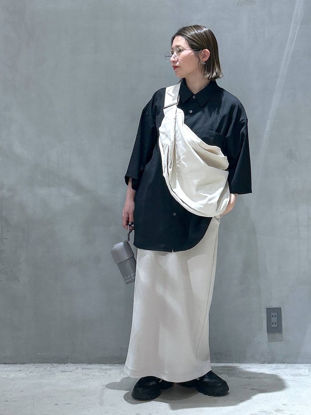 一つ前のスカート着回してます🌼 今回は メンズのシャツあわせて💙 あえてのL着用してます! サラッとした着心地で涼しげ〜 兼用でもよさそう🤓