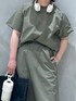カーキのセットアップかわいい!!🩶 セットアップできるだけで一気にお洒落感😎 肌ざわりの良いカットソー素材のトップス。 身幅にゆとりもあるので締め付けなく着用◎ 裾部分にドロスト紐をデザインし、 裾を絞ったシルエットが楽しめるのも👌