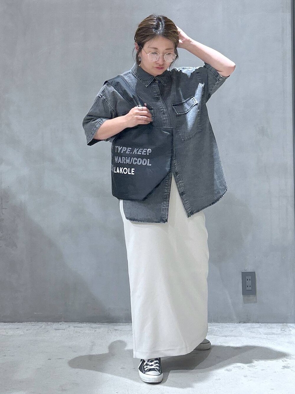 デニムシャツは、 下の方のボタンをあけてるのが ポイント〜👍💛 エコバッグは、 保冷保温エコバッグだからめっちゃいいー!🥳