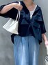 ネイビーシャツ✖︎デニムパンツ 最強の組み合わせにかわいいです!! インナーの白のタンクもポイント👌💓 夏らしく涼しげにまとめました🌞🏝️ 晴れ雨&遮熱バイカラー長傘も お求めやすくやってます!!!🌞☔️