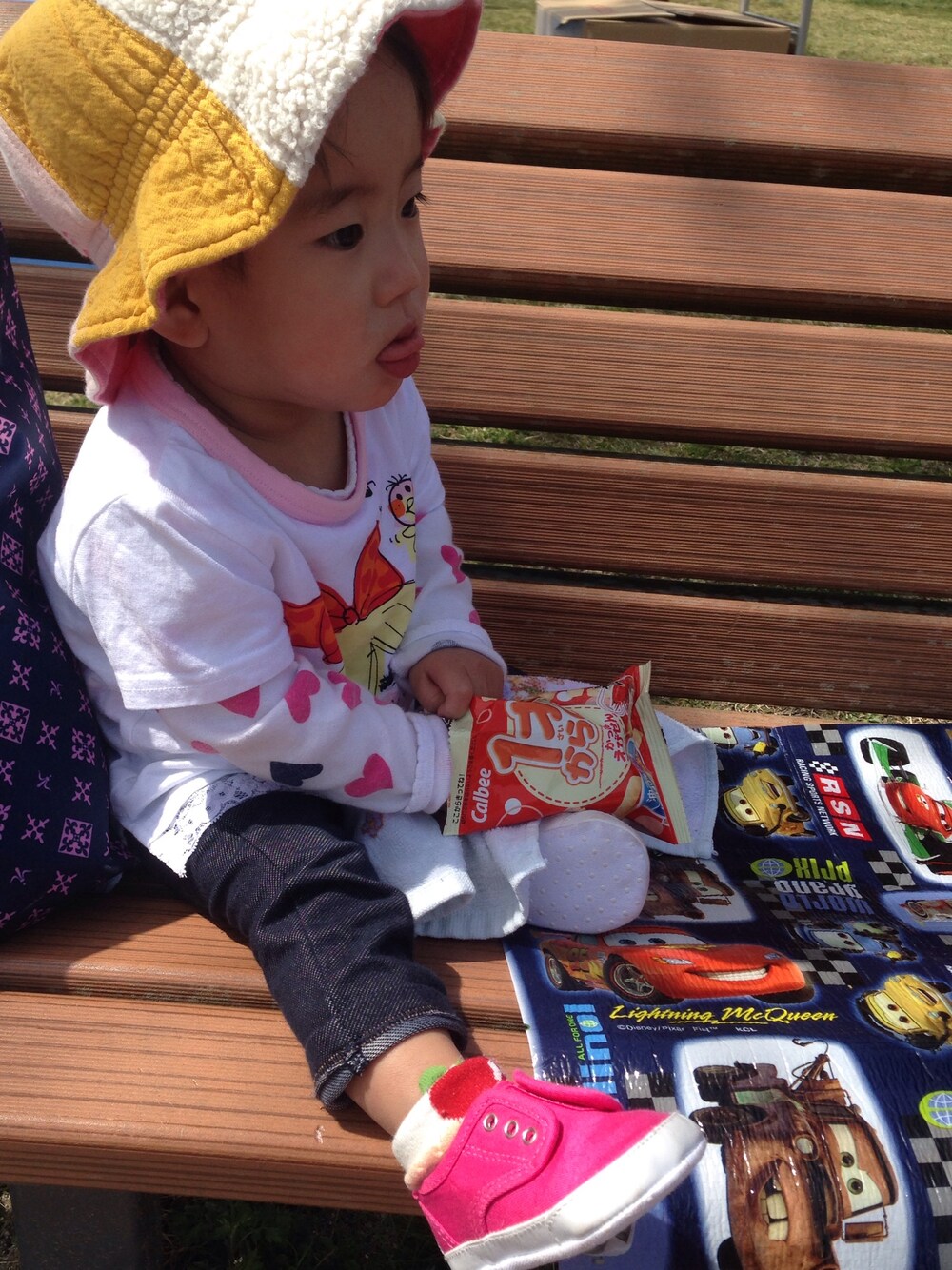 近くの公園で、花見してます🌸 桜満開で、きれーい(´,,•ω•,,)♡ 帽子は冬物だけど。そこは御愛嬌♡♡(笑) 春物買わなきゃだ(*ノдノ)