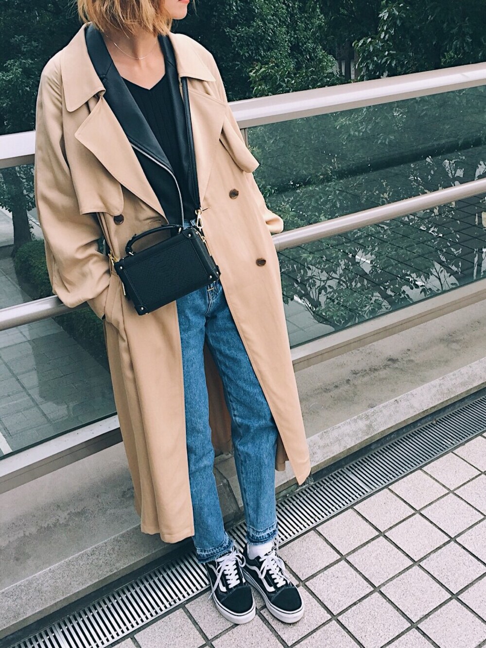 この日はまだまだ寒くて トレンチにライダースレイヤード インスタ@asammy_s