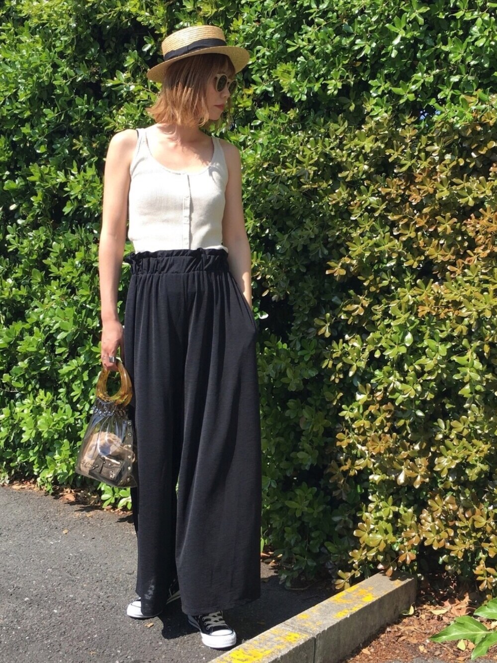 AZUL BY MOUSSYの ゆったりパンツで夏先取りコーデ👒 サラサラしててウエストもゴム 夏いっぱい履きます🌻 インスタ@asammy_s
