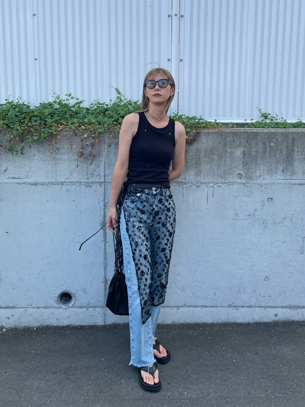 asammyのショルダーバッグ「ヴィーガンレザー巾着ショルダーバッグ」を使ったコーディネート